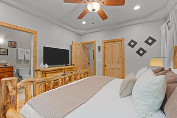 Lower bedroom boasts two queen-size beds